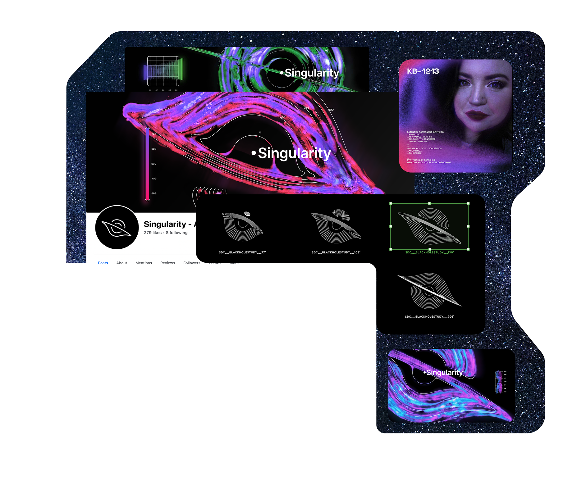 With the studio being named after the center of a black hole, exploring the uniqueness of this mysterious space phenomenon is at the core of this identity.